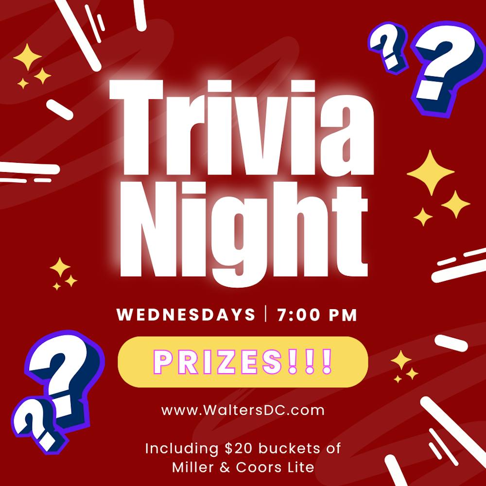 Join us for the best trivia night in Navy Yard, the ultimate mid-week escape at Walters Sports Bar! Our Trivia Night begins every Wednesday at 7 PM sharp, so gather your crew, bring your A-game, and get ready for a night of fun, prizes, and unbeatable drink specials.